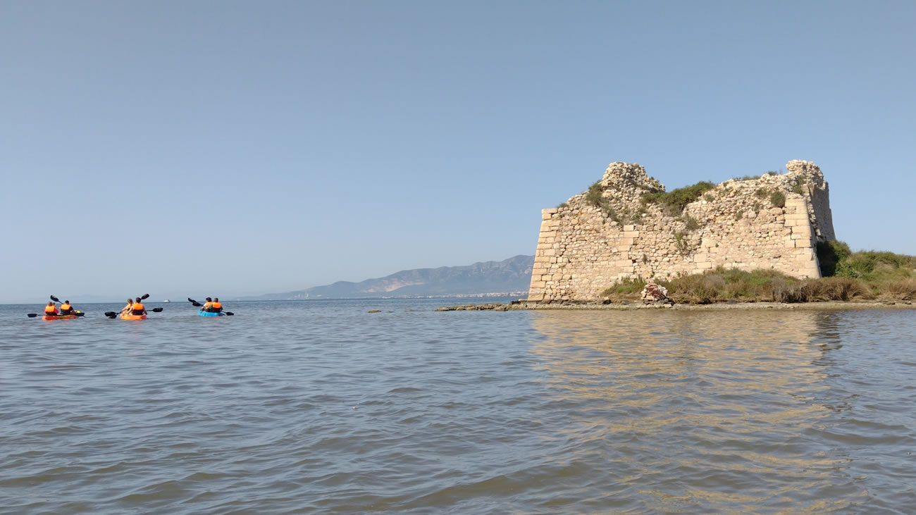 La ruta es muy fácil y segura, ya que transcurre por una zona de muy poca profundidad, en ella podremos admirar esta construcción en ruinas que servía para vigilar la bahía dels Alfacs, y la fauna presente en ella, es muy probable avistar flamencos.